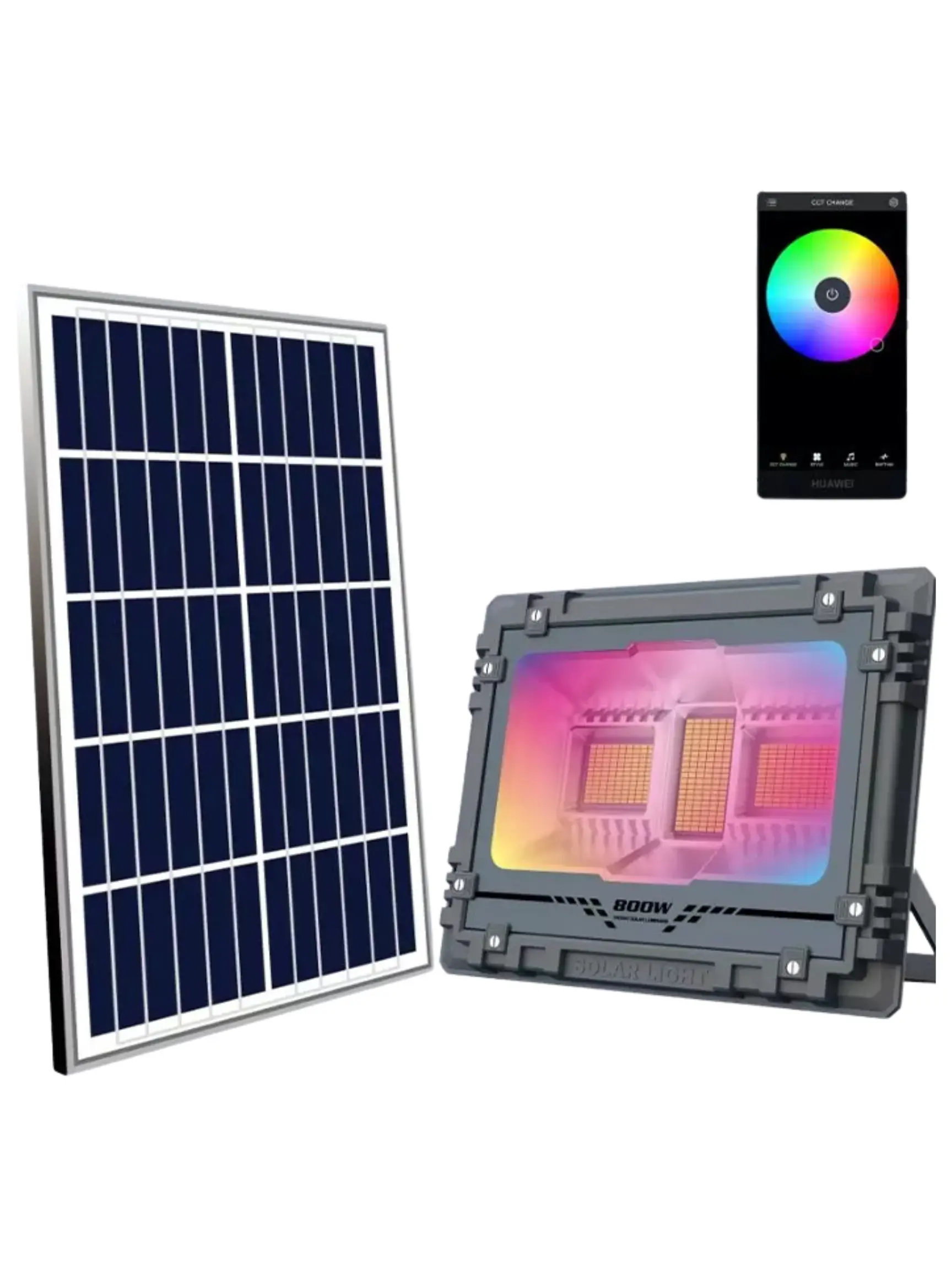 NEWTEC AWR-800 SMART היא תאורת הצפה סולארית מתקדמת בהספק 800W המשלבת שליטה חכמה מהנייד, תאורת RGB דינמית וסוללה חזקה במיוחד לעבודה רציפה לאורך כל הלילה. המערכת מאפשרת לך לשלוט בצבע התאורה, בעוצמה ובמצבי ההפעלה ישירות מהטלפון או באמצעות שלט רחוק – פתרון מושלם לתאורה פונקציונלית ודקורטיבית כאחד.