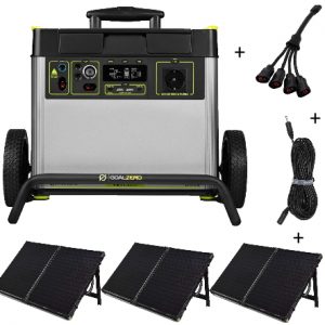 גנרטור חשמלי + 3 פאנלים סולאריים, מפצל וכבל מאריך – קיט 3000X